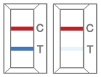 The intensity of the Control line should not be compared to that of the Test line for the interpretation of the test result. Any faint visible red or pink Test line should be interpreted as positive, when the control line (C) is also present. -