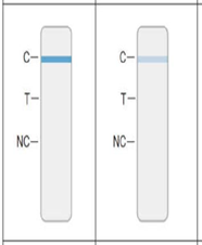 1. The appearance of any shade of Blue Test Line at the “T” position indicates the presence for SARS-CoV-2 as shown in Figure 2.