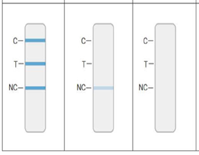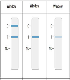 2. The appearance of ALL lines or NO lines at “C”, “T”, and “NC” indicates an invalid test as shown in Figure 3.