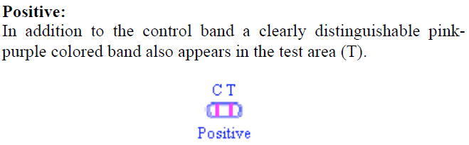 1. In addition to the control band, a clearly distinguishable pink-purple colored band also appears in the test area (T) as shown in Figure 2.